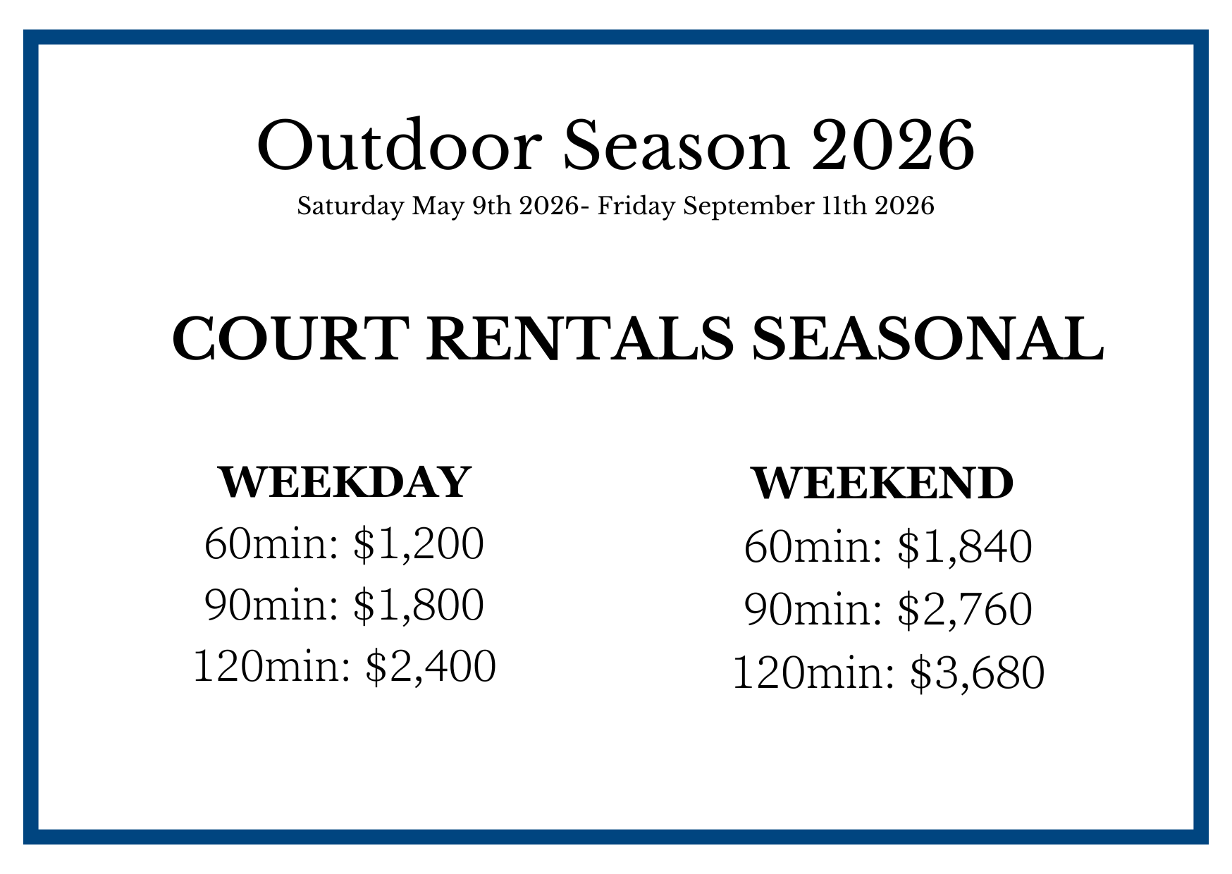 Seasonal Court Rental