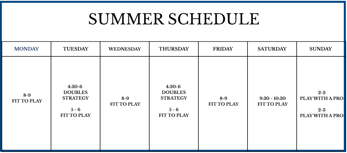 Our outdoor season brings new energy—and new opportunities to get on court. These special sessions are designed to take advantage of the beautiful weather and outdoor setting, and they’re only here for the season—so don’t miss out!